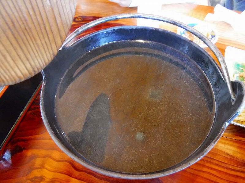 そして、鉄鍋にはたっぷりの鶏スープがやってきます。