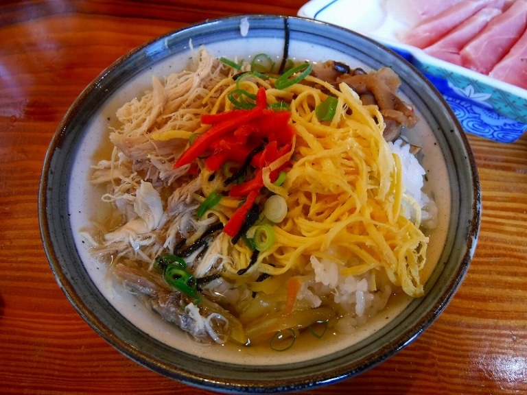 戦後もっとあっさりとしたものをと工夫され今の鶏飯になりました。