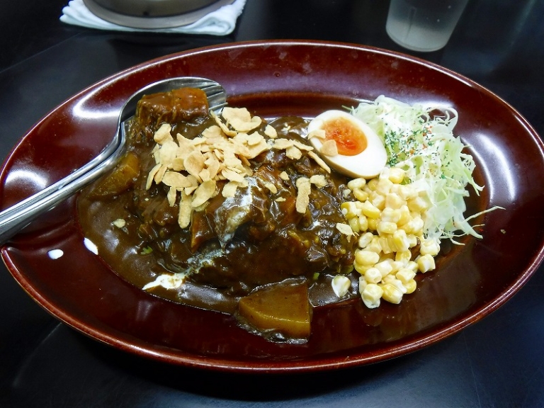 カレーは黒とまではいかなけど、濃い目。