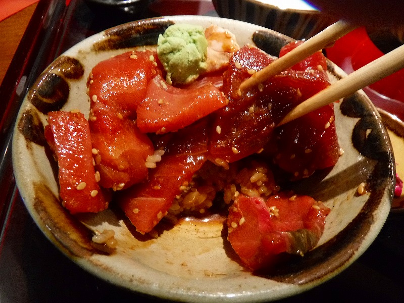 僕は、夜は到底行けないのでランチの行列ができる鮪ヅケ丼定食で満足。