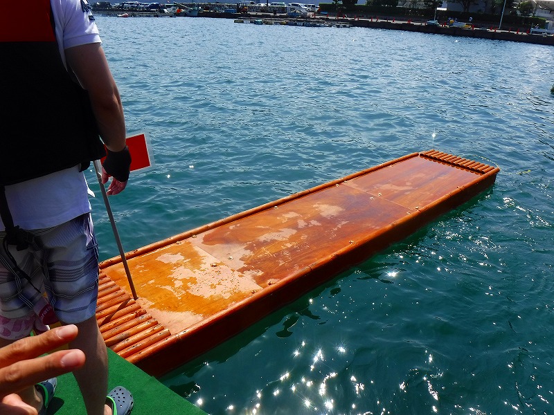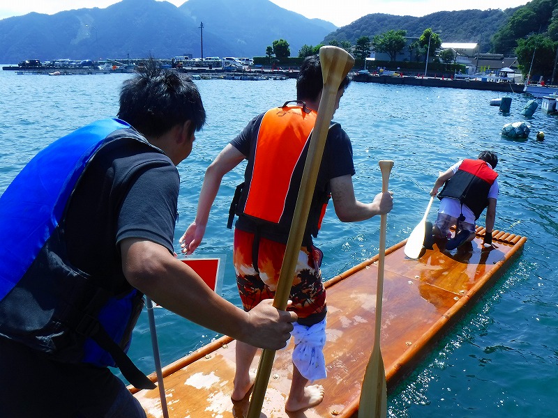 本当に四角の木のいかだでめちゃめちゃ水の抵抗ありそう。