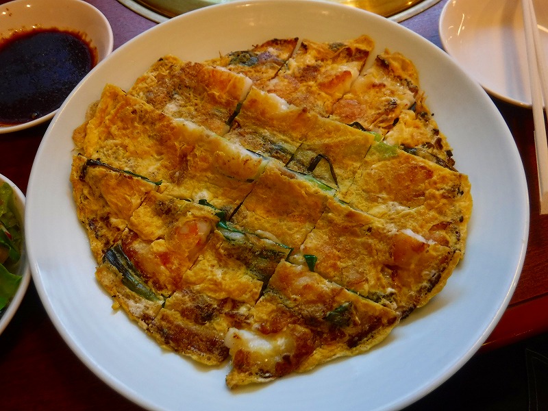 あとサイドメニューとしては「海鮮チヂミ(イカ・エビ入り)(1,404円)」をオススメします。