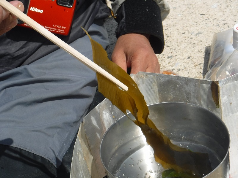 それではセントレア沿いのテトラポッド周辺でわかめの収穫。