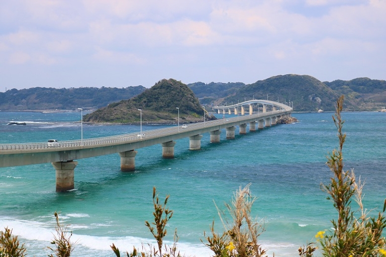 2000年に開通した比較的新しい橋で、山口県の本島から角島へ向かって伸びており、通行料金無料の離島への橋として、全長1,780mと日本第3位の長さなんです。